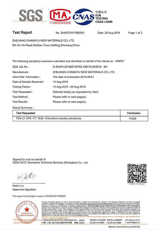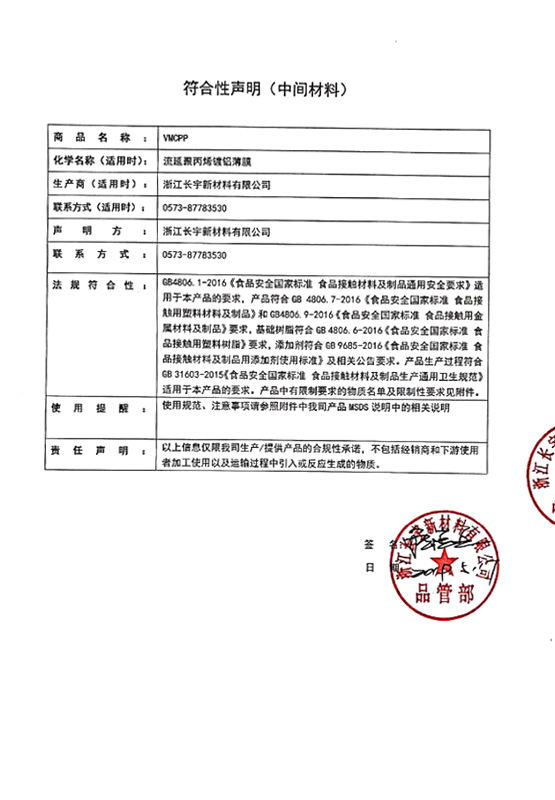 Changyu является пионером и пропагандированием «прозрачной пленки оксида алюминия для упаковки» на китайском рынке, мы предприняли неотъемлемые усилия по разработке и продвижению этого продукта, Changyu также является консультантом постоянных основных национальных стандартных проектов «Качественные правила оксидных барьеров прозрачных пластиков ламинированных фильмов и пакетов для продовольственной упаковки».